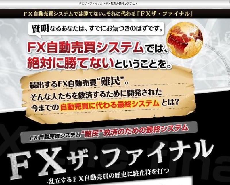 この度、私たちは今までのFX自動売買システムの歴史に終止符を打つべく、FX最終システム「FXザ・ファイナル」を完成させ、